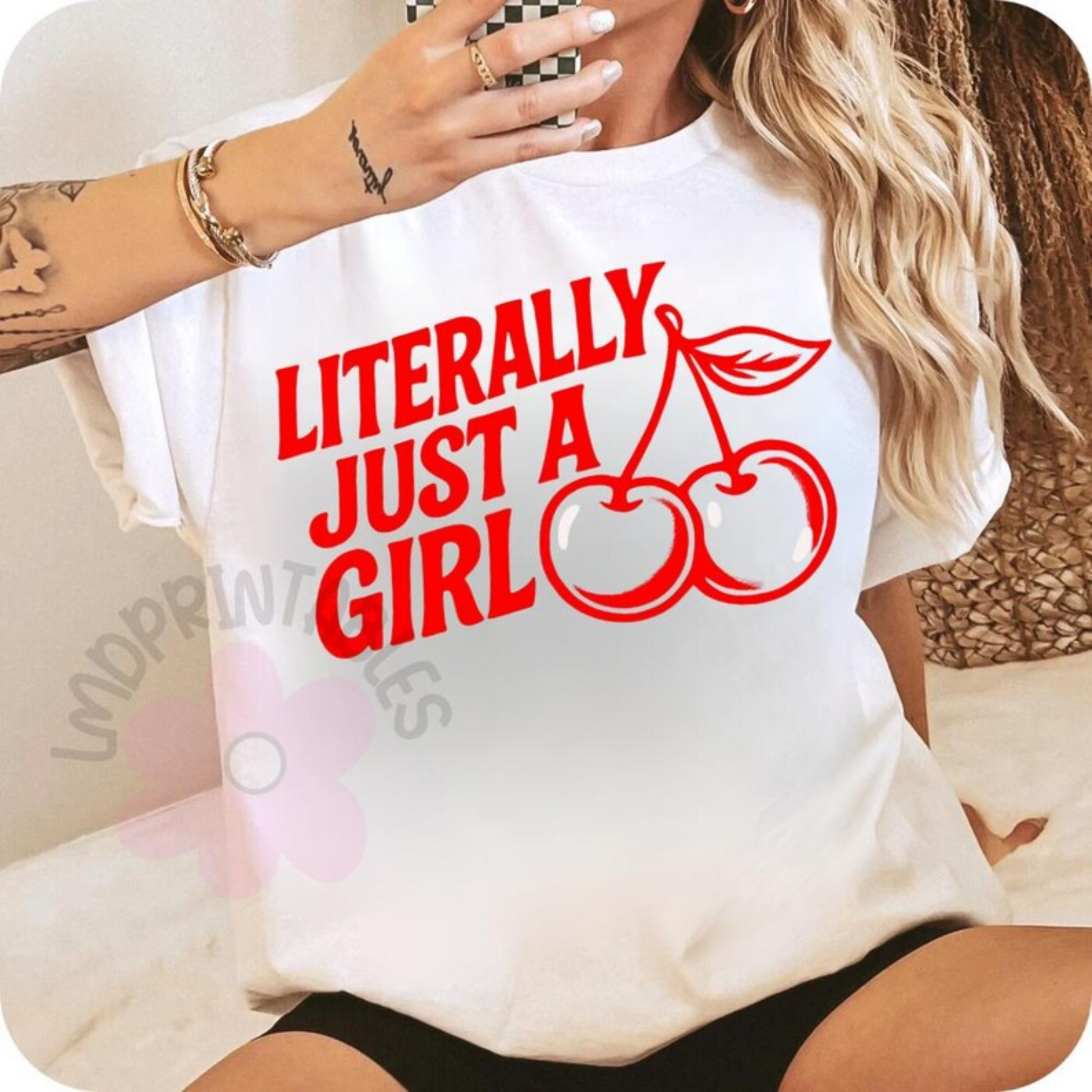 RTS LITERALLY JUST A GIRL SINGLE COLOR RED DTF DIRECT TO FILM transfers ADULT 9X12 29-B