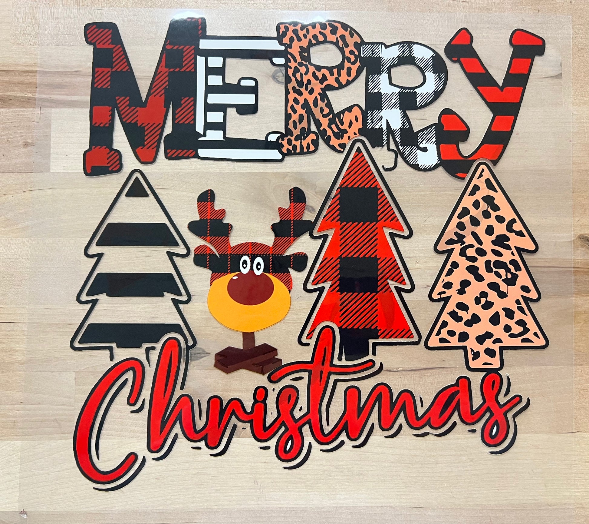 MERRY CHRISTMAS reindeer leopard plaid trees size ADULT DTF TRANSFERPRINT TO ORDER