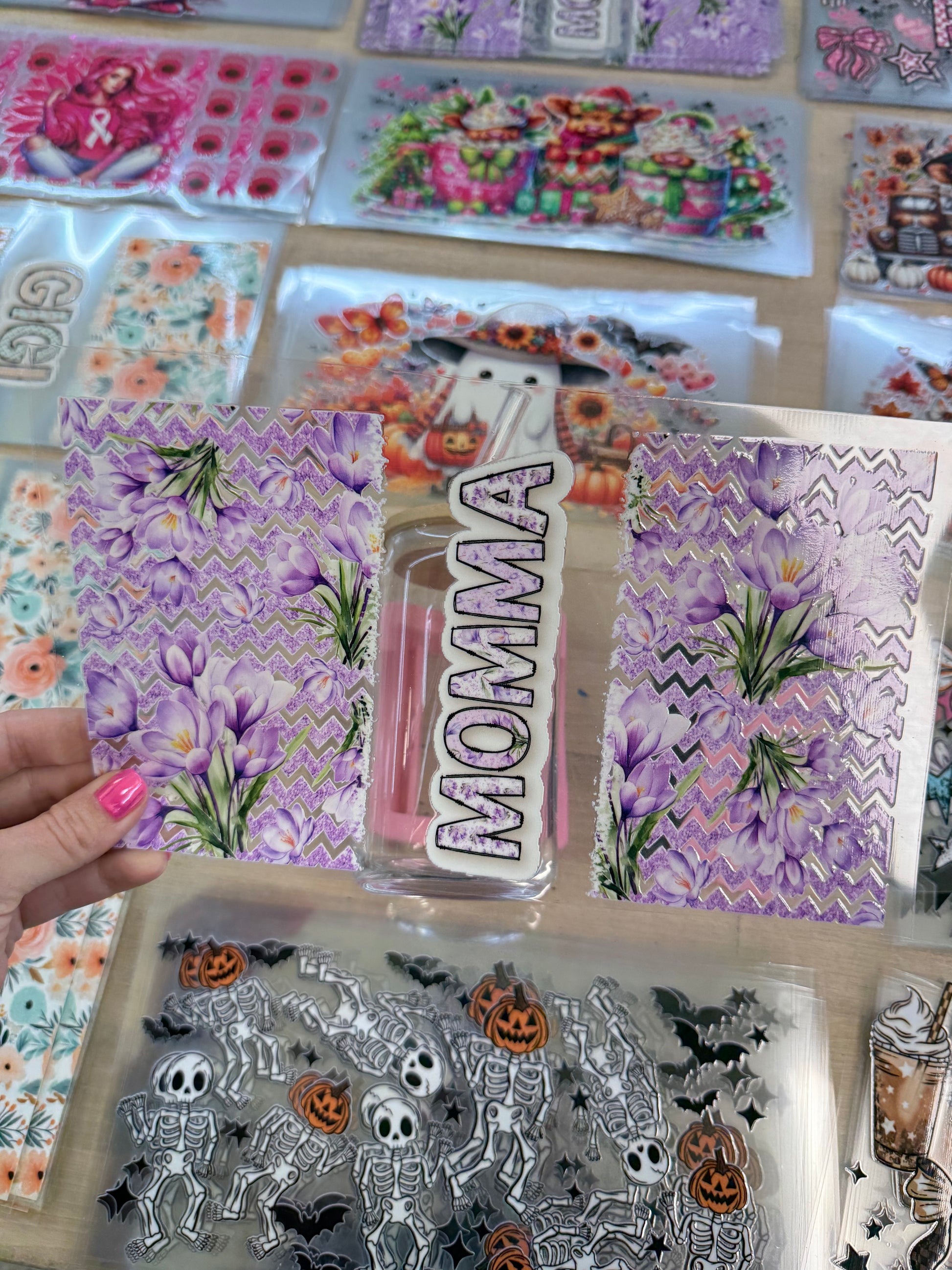 RTS MOMMA PURPLE FLOWERS CUP WRAP UV DTF 16OZ